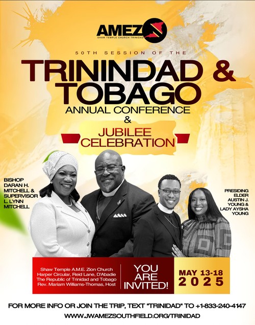 You are invited to join us for the Trinidad & Tobago Annual Conference. Our time will include spirit-filled worship, meaningful fellowship, city tours, and good eating. This year, Trinidad will celebrate 50 Years of Zion in the country. Get ready to join us for the Annual Conference and Jubilee Celebration! Below is the hotel information, a general outline, and other important information.